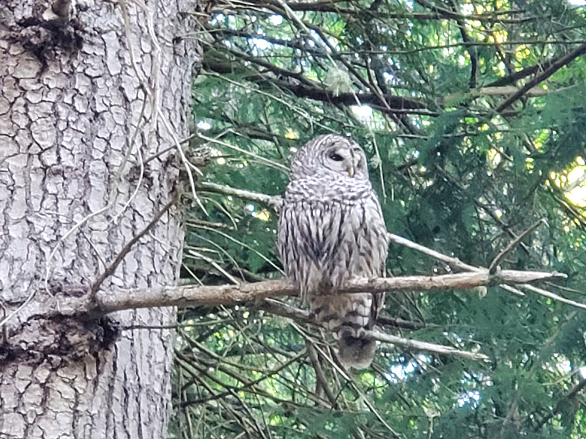 Listen to frogs, owls, and the clucking from nearby Chicken Island.