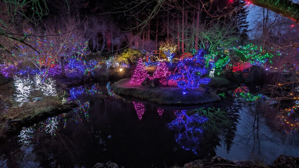 Finally, a must see for anyone visiting Mayne for the first time is the Japanese Memorial Garden: a tranquil space of winding forest paths, koi ponds and benches, honouring the island’s early Japanese-Canadian settlers. It’s free and open year-round, perfect for a soulful wander. It’s a special place throughout the year, made spectacular during December with dazzling lights displays.